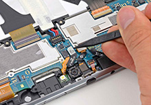 Мастер нашего сервис центра проводит ремонт: заменяет неработоспособную запчасть рабочей качественной деталью